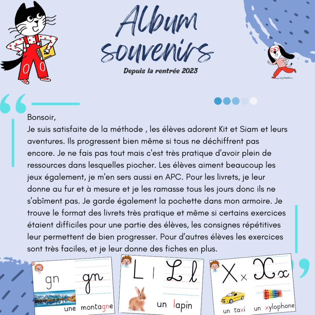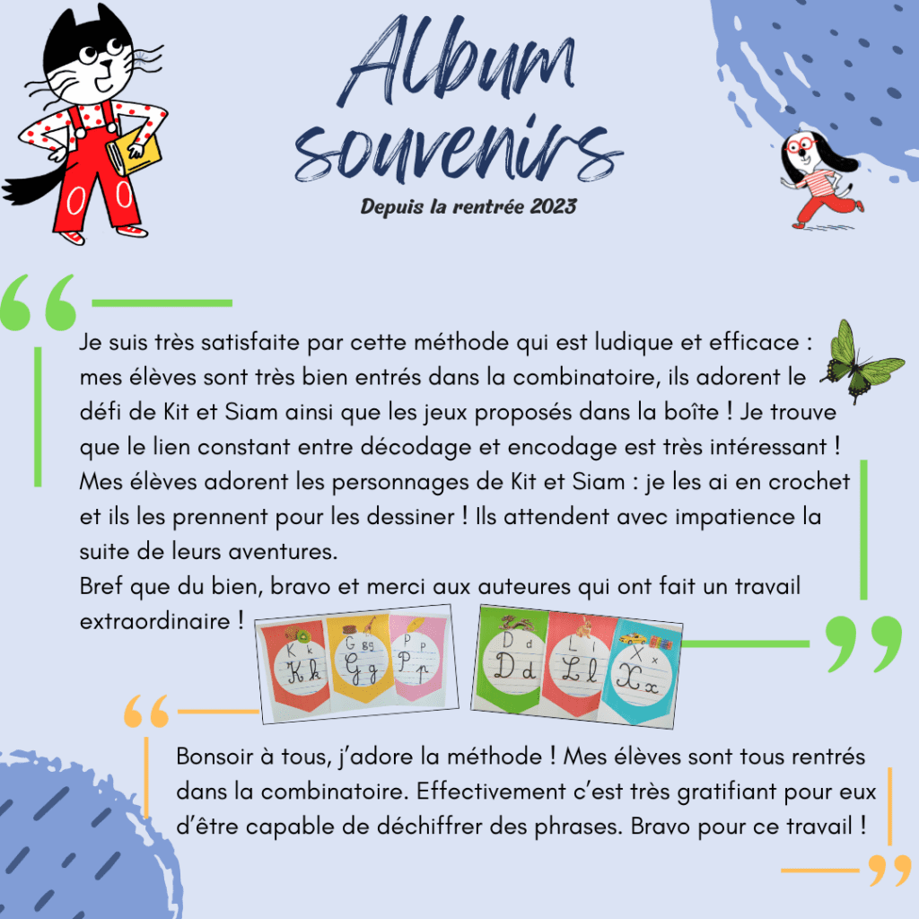 🌷Depuis la rentrée de septembre 2023, nous avons le plaisir de suivre des classes et d’échanger avec tout un tas de collègues qui se sont lancés dans la méthode Kit et Siam.