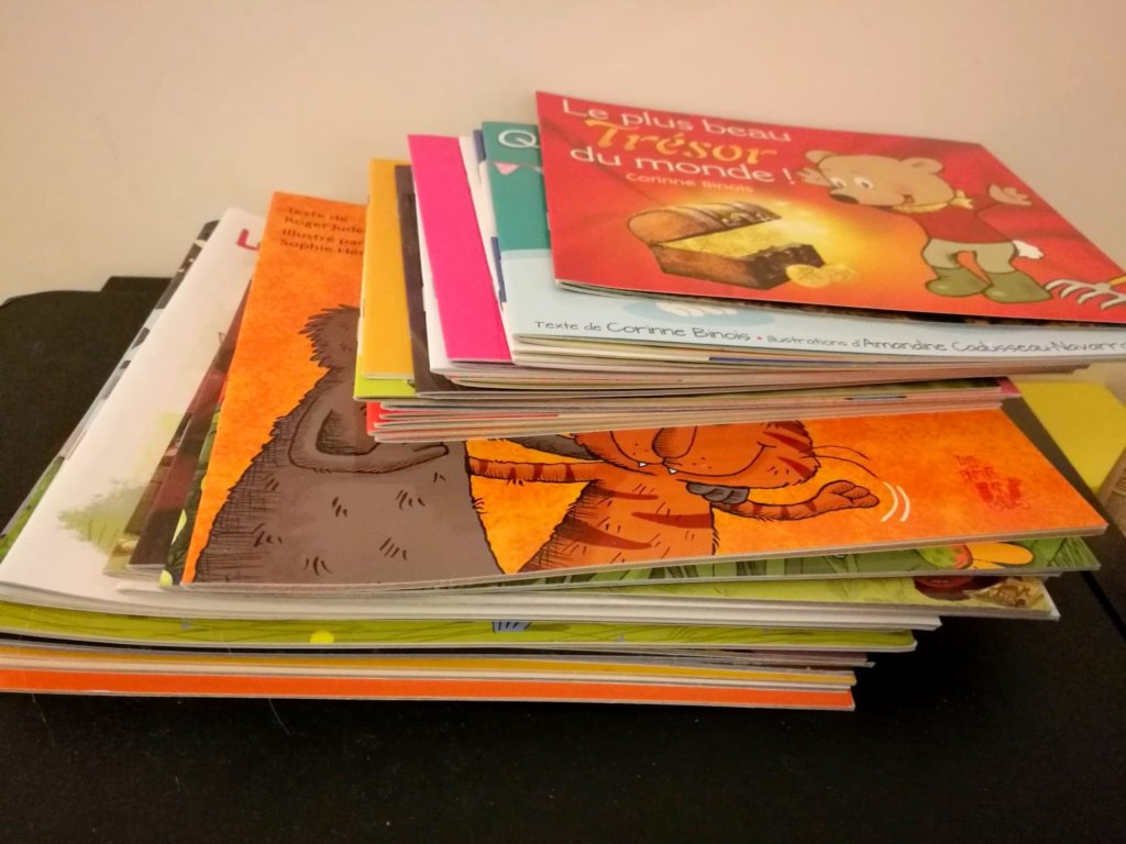 Je me suis procurée récemment plein de nouveaux albums pour la classe. A petits prix, bien sûr, grâce à l’association Lire, c’est partir ! Les livres coûtent chacun 80 centimes (il faut ajouter tout de même les frais de port pour se faire livrer). Mais évidemment, ça vaut le coup ! J’ai payé en tout 41 euros pour 36 albums.