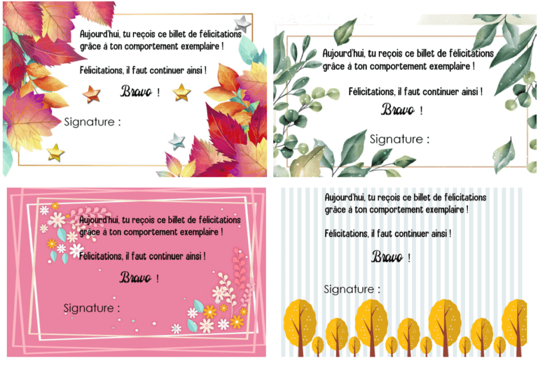 - Je pense laisser le choix aux élèves du design qu’ils veulent pour les billets de félicitations.