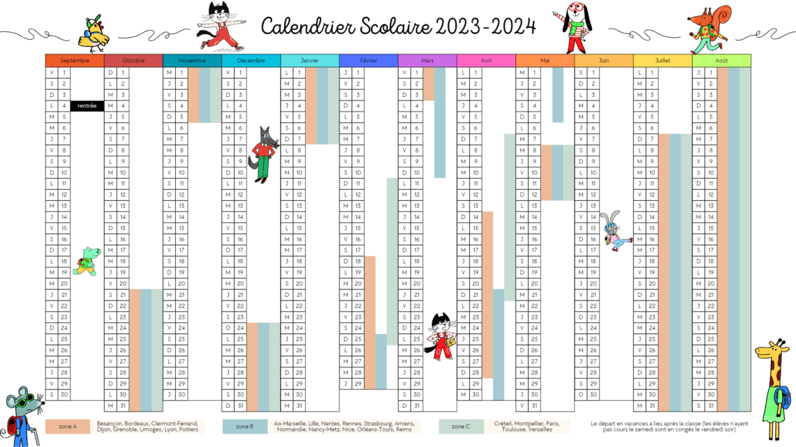 Voici un petit calendrier pour l’année scolaire à venir, aux couleurs de Kit et Siam !