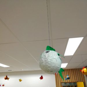 Poissons en papier mâchéUn océan de poissons au plafond <h3>La recette d'un poisson bien réussi</h3> Pour réaliser ces succulents petits poissons bien grassouillets, vous aurez besoin :</p><ul><li>De bandes de <strong>papier journal</strong> ;</li><li>De la <strong>pâte</strong> de papier mâché (de la colle pour papier peint…