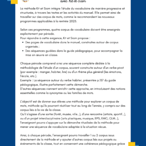 📚 VOCABULAIRE EN CONTEXTE 📚 Dans Kit et Siam, l’étude du vocabulaire ne se résume pas à des listes de mots : elle s’ancre dans des corpus riches et vivants, en lien avec les textes et les projets de la…