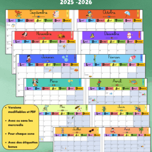 Bonjour ! Vous retrouverez dans les fichiers ci-dessous, en bas de cette page : Un calendrier par zone de vacances scolaires, avec ou sans les mercredis travaillés ; Un calendrier sans aucunes vacances scolaires apparentes ; Soit 7 documents PDF et leurs 7…