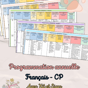 Le document proposé ci-dessous rassemble les programmations en français pour le CP, construites autour de la méthode Kit et Siam, période par période. Chaque semaine y est structurée de manière détaillée, en lien avec : les correspondances graphèmes-phonèmes étudiées ;…