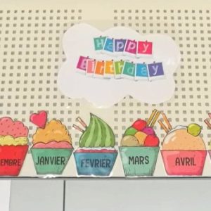 Happy Birthday ! Voici mon affichage en classe des anniversaires des élèves. De petits cupcakes, de septembre à août, où chaque élève a une bougie à son nom (je ne les ai pas encore installées, j’attends le listing définitif de…