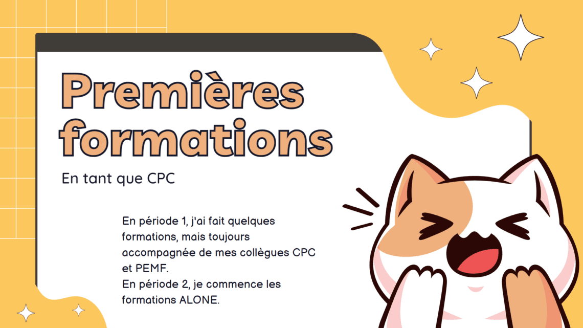 Que de nouveautés, cette année ! On débute la période 2 avec de nouveaux challenges. J’ai eu la chance de faire quelques formations en début d’année, notamment les formations de directeurs et la première réunion pour les constellations. A chaque fois, j’étais accompagnée par mes collègues CPC, PEMF et l’IEN.