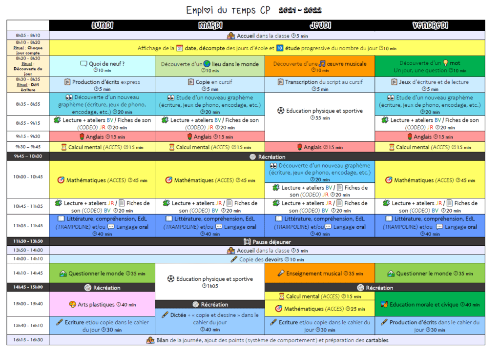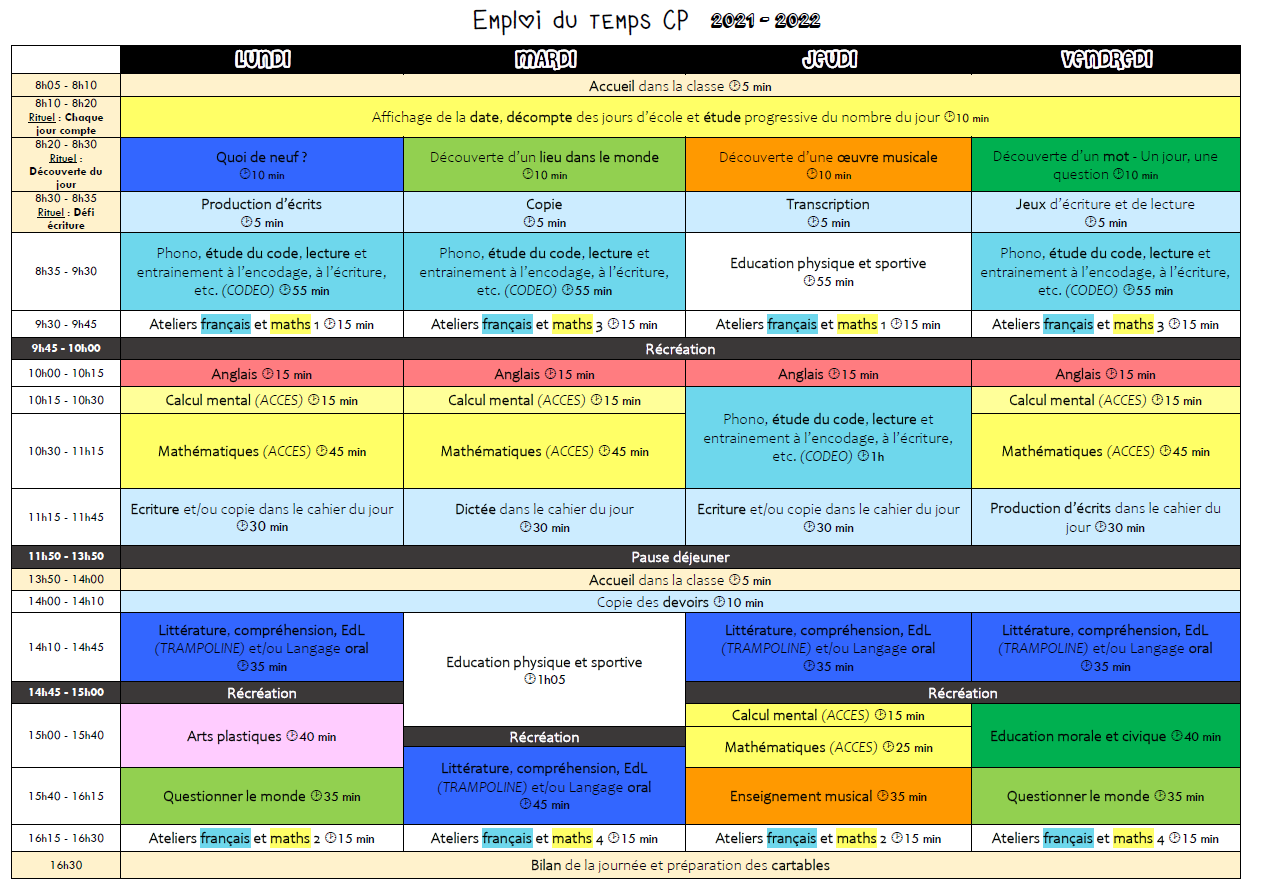 Petite présentation de mon emploi du temps pour la cette année 2021 – 2022 !