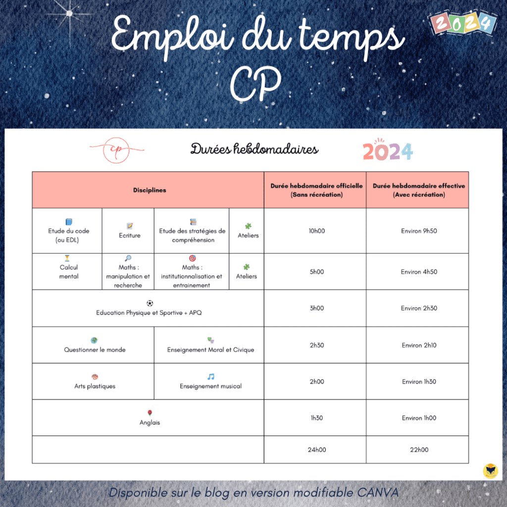 Voici la mise à jour de l’emploi du temps, version 2024 – 2025 !