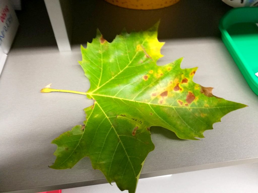 Sur une grande feuille A3 cartonnée, poser la feuille d’automne au centre et la patafixer.
