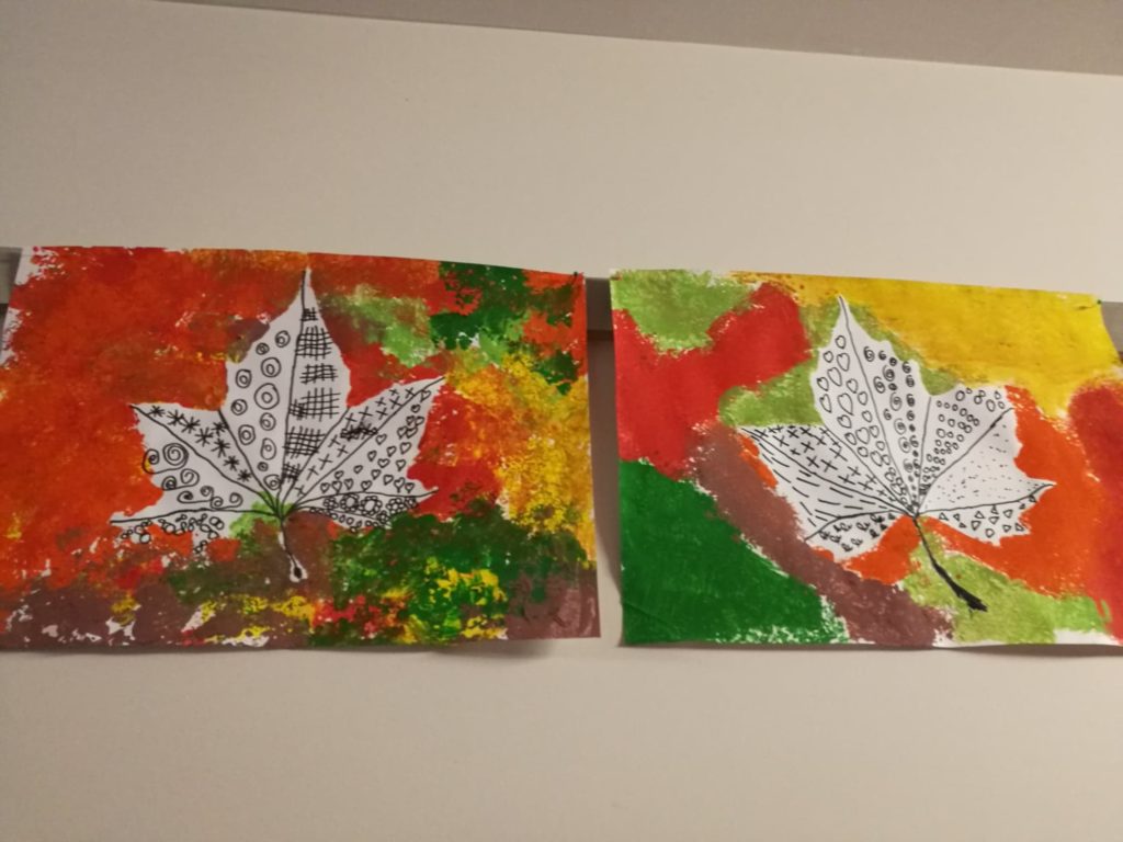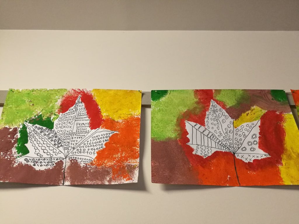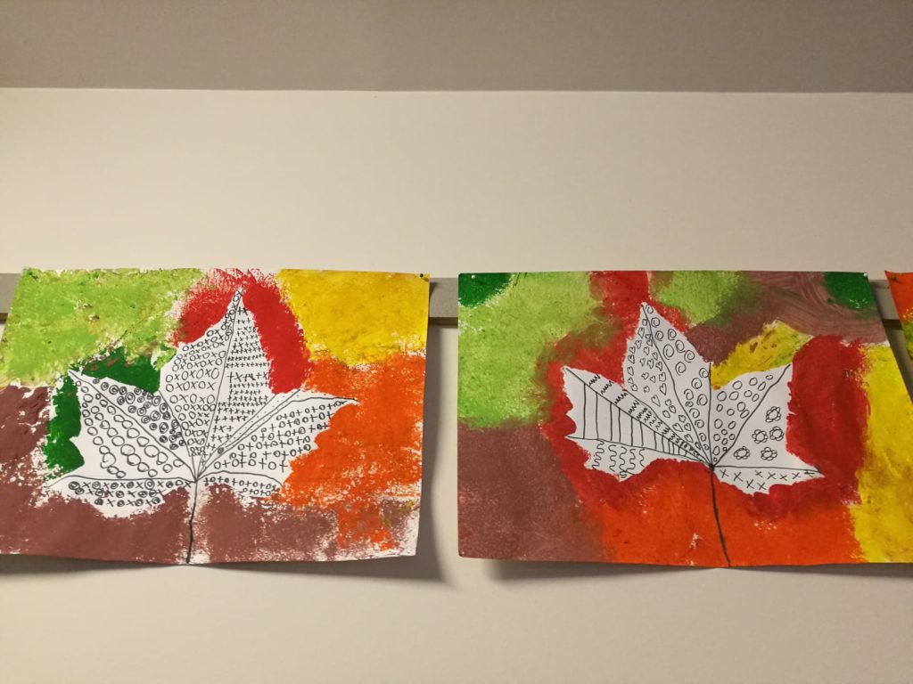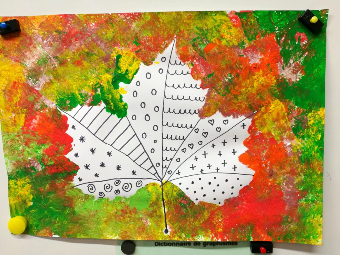 Voici un travail que nous avons fait en arts visuels, autour des feuilles d’automne et des graphismes.
