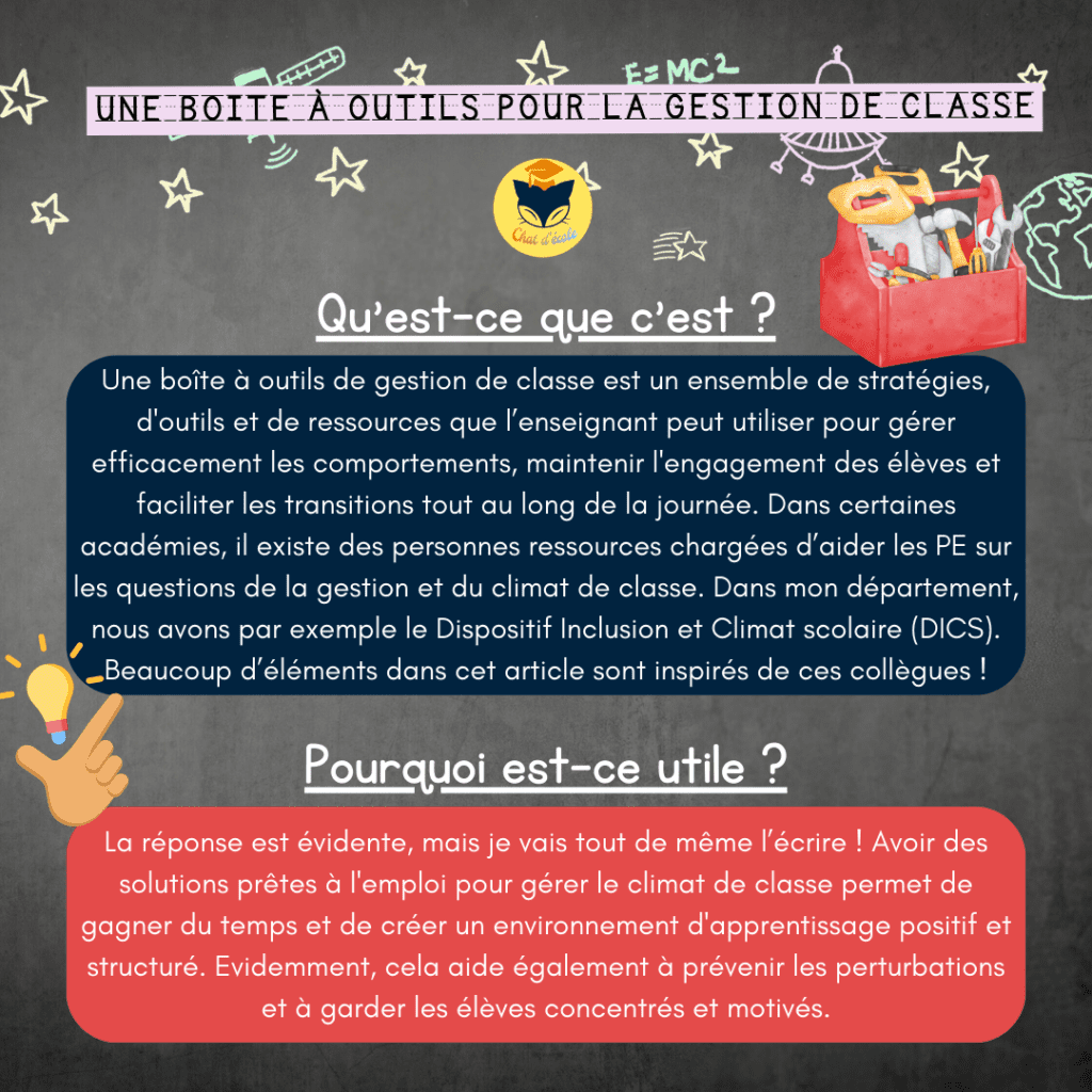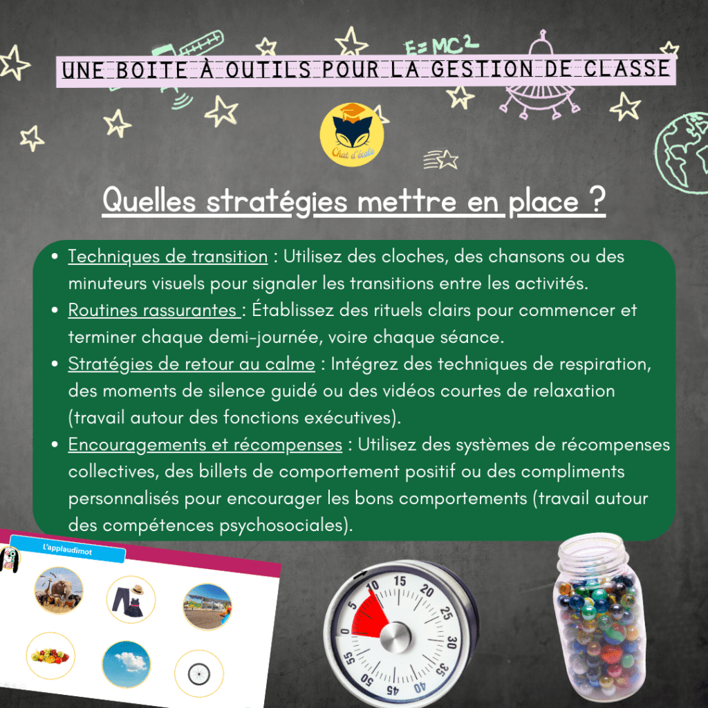 Je me suis inspirée du super travail des personnes ressources qui travaillent quotidiennement autour des thématiques de la gestion et du climat de classe. Merci à eux ! 🙏