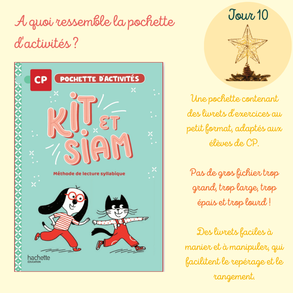 🔥 C’est pourquoi nous proposons, dans la méthode Kit et Siam, des formats adaptés aux CP pour les exercices : ni trop longs, ni trop larges, ni trop épais. Faciles à manier, qui ne créeront aucune gêne pour lire et pour écrire. Il s’agit de petits livrets d’exercices rangés dans une pochette contenant toutes les activités de l’année en code, en étude de la langue et en compréhension.