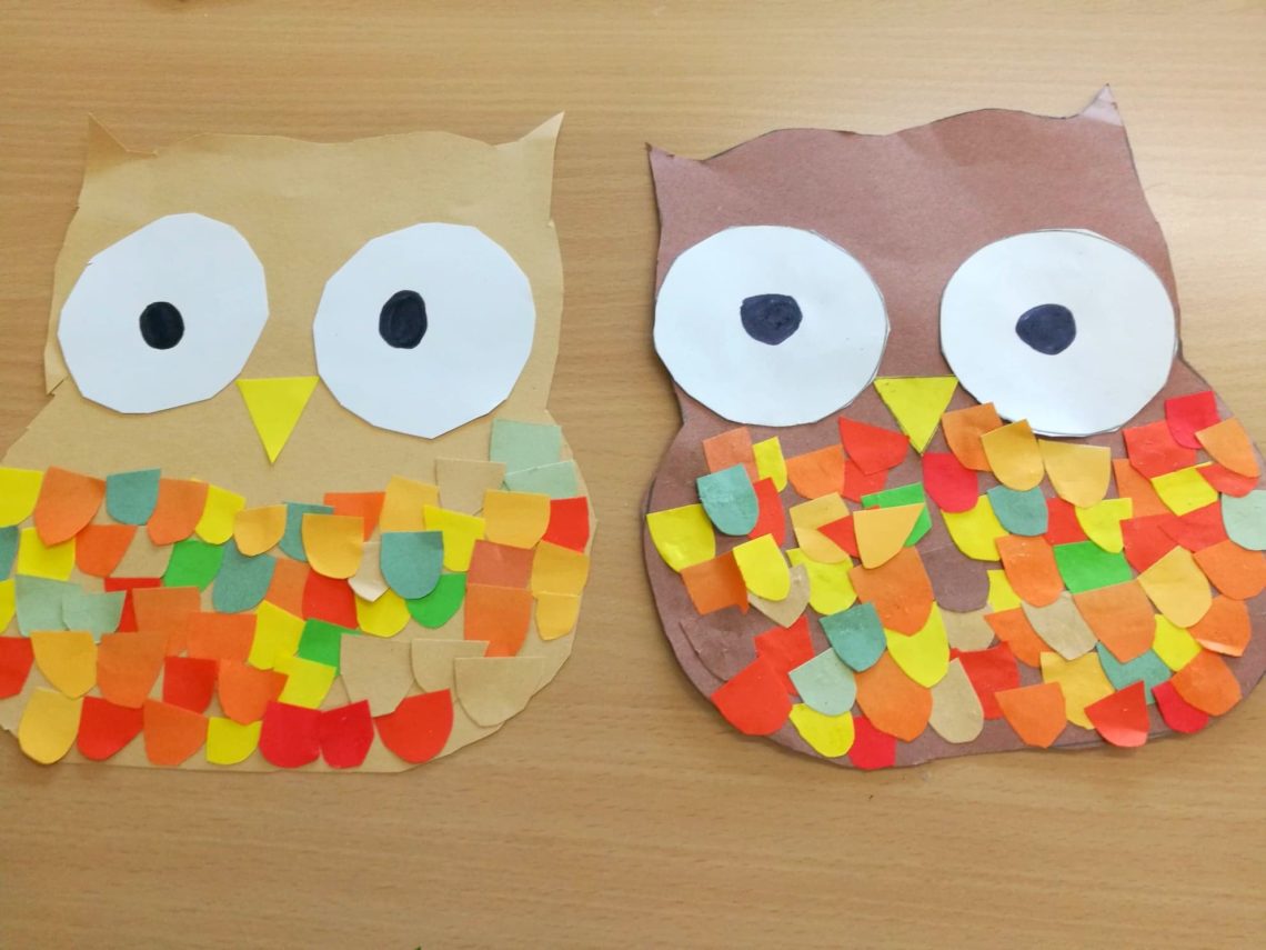 Je vous présente très brièvement la dernière activité que nous avons fait en arts visuels au mois de novembre. Dans la continuité de notre travail sur la forêt, les arbres et les animaux d’automne (voir progressions P2), nous avons réalisé un hibou multicolore !