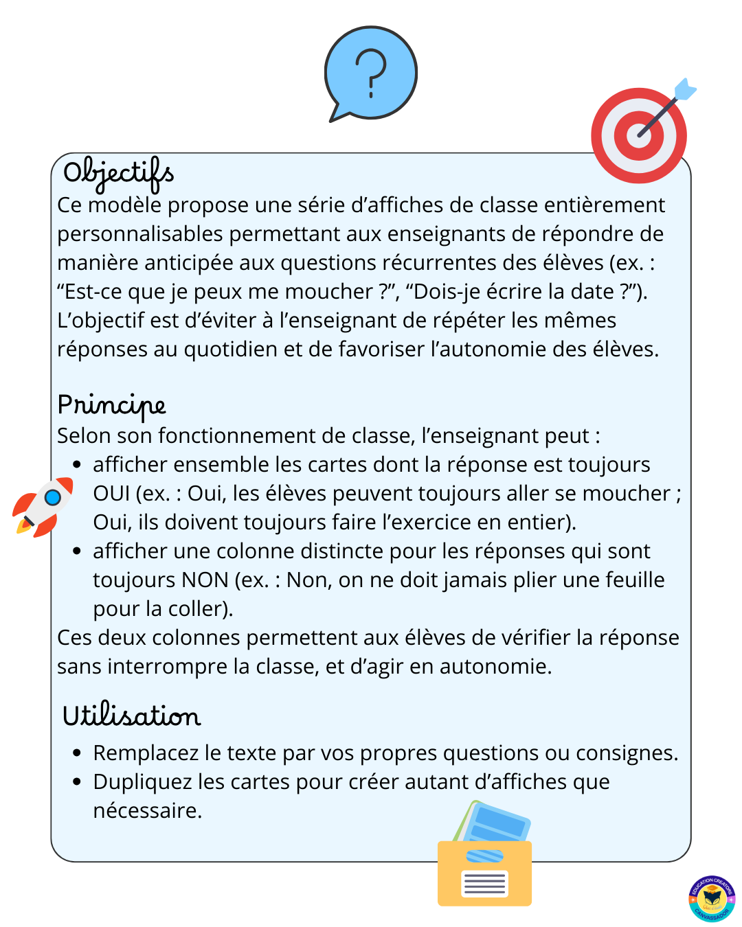 J’vous explique le problème ! Souvent, les élèves lèvent la main parce qu’ils ont un souci, quelque chose qu’ils voudraient faire mais ils se savent pas s’ils ont le droit.