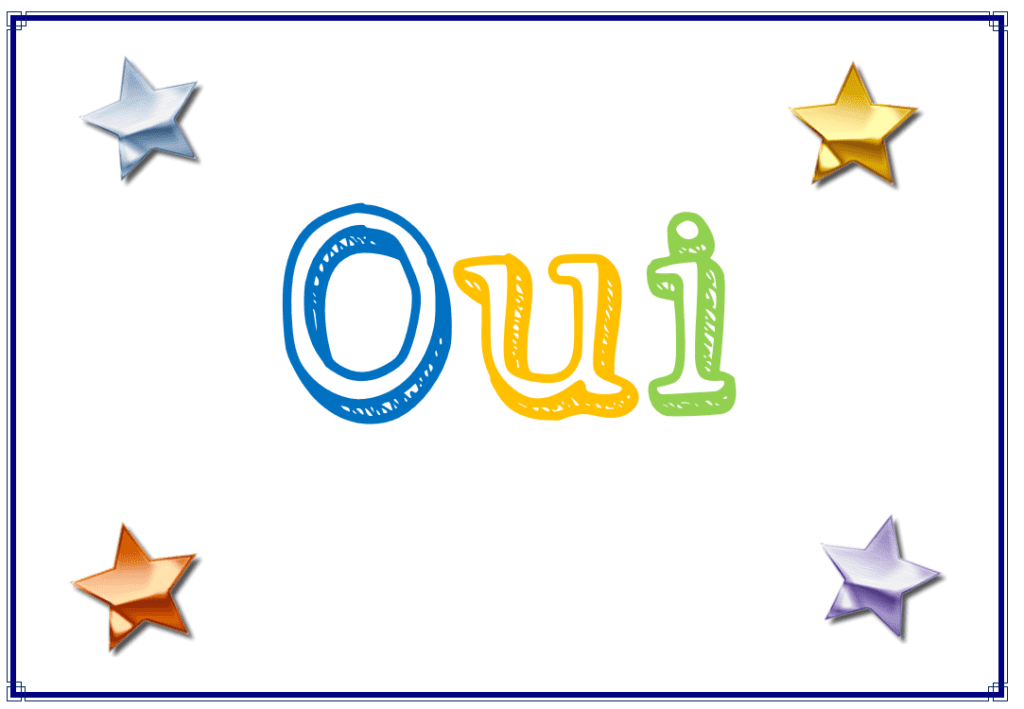 Mais croyez-moi, c’est très simple ! Pour répondre à toutes ces questions existentielles des élèves, je place tout simplement dans un coin de la classe un grand OUI comme l’image au-dessus. Et à côté toutes les questions des élèves où je réponds toujours oui.