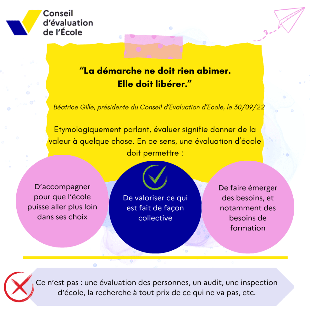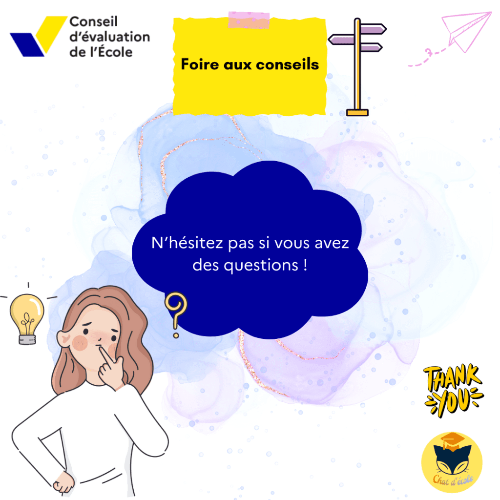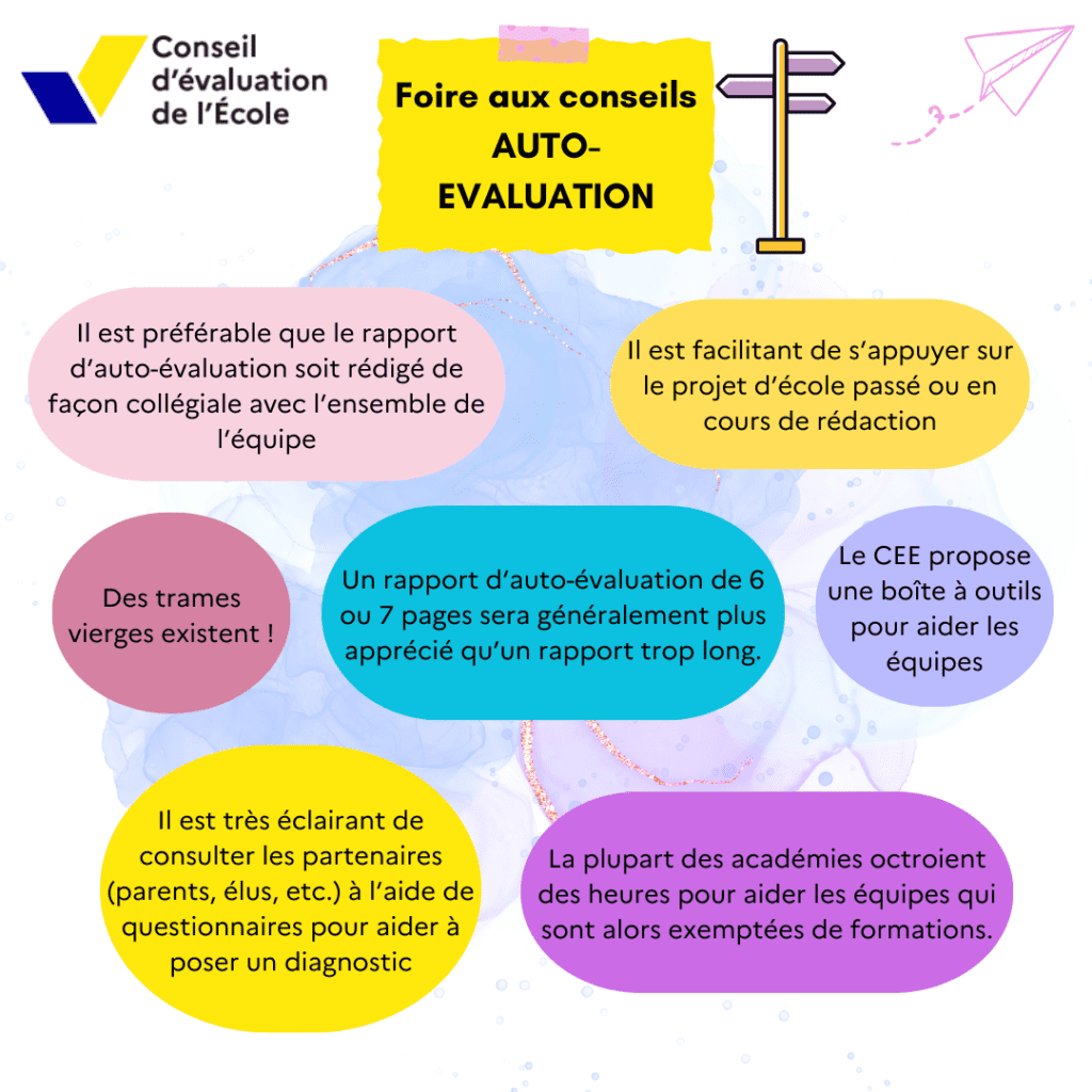 Je vous propose quelques informationset conseils ci-dessous, qui j’espère, pourront être utilesaux collègues qui sont/seront en évaluation d’école.