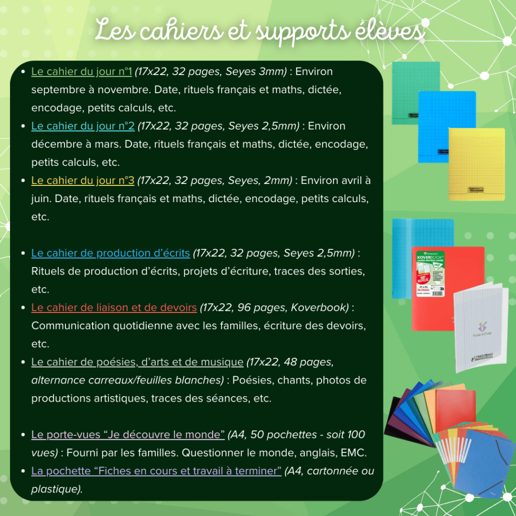 📅 Rentrée 2024 : Fournitures scolaires, cahiers, supports, méthodes et manuels.