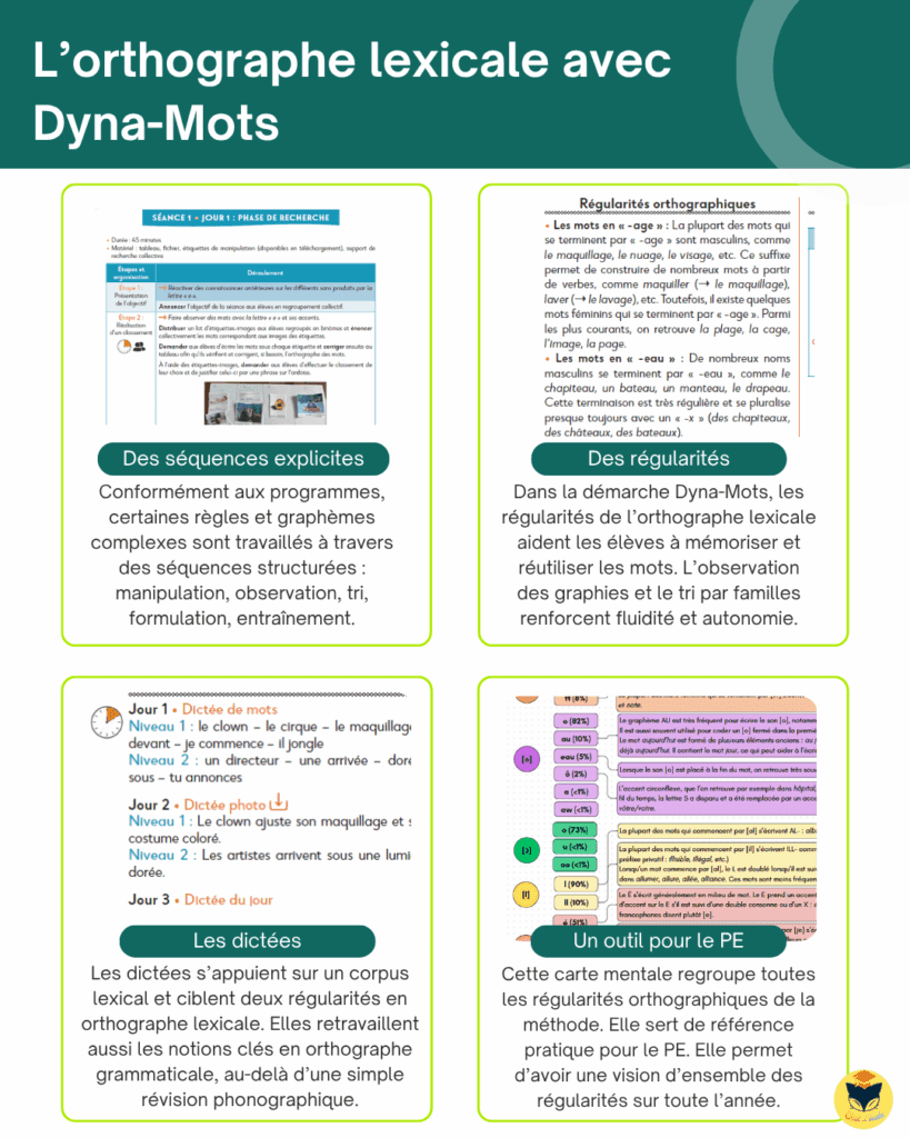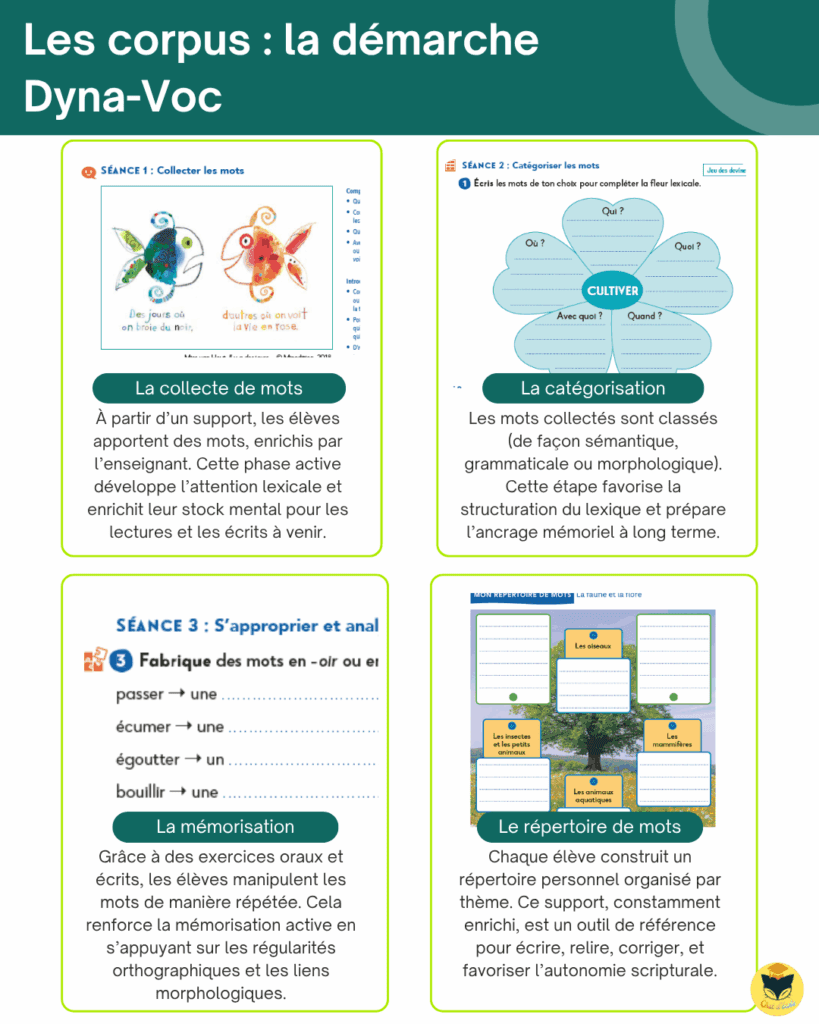 L’ambition, s’il fallait la résumer, est avant tout de construire des outils linguistiques au service de la production (orale et écrite). Ce point précis était d’ailleurs l’objectif de mon intervention au KED PARIS 2025, auprès de Caroline Le Coq (Lollie), co-autrice de Dyna-Mots.