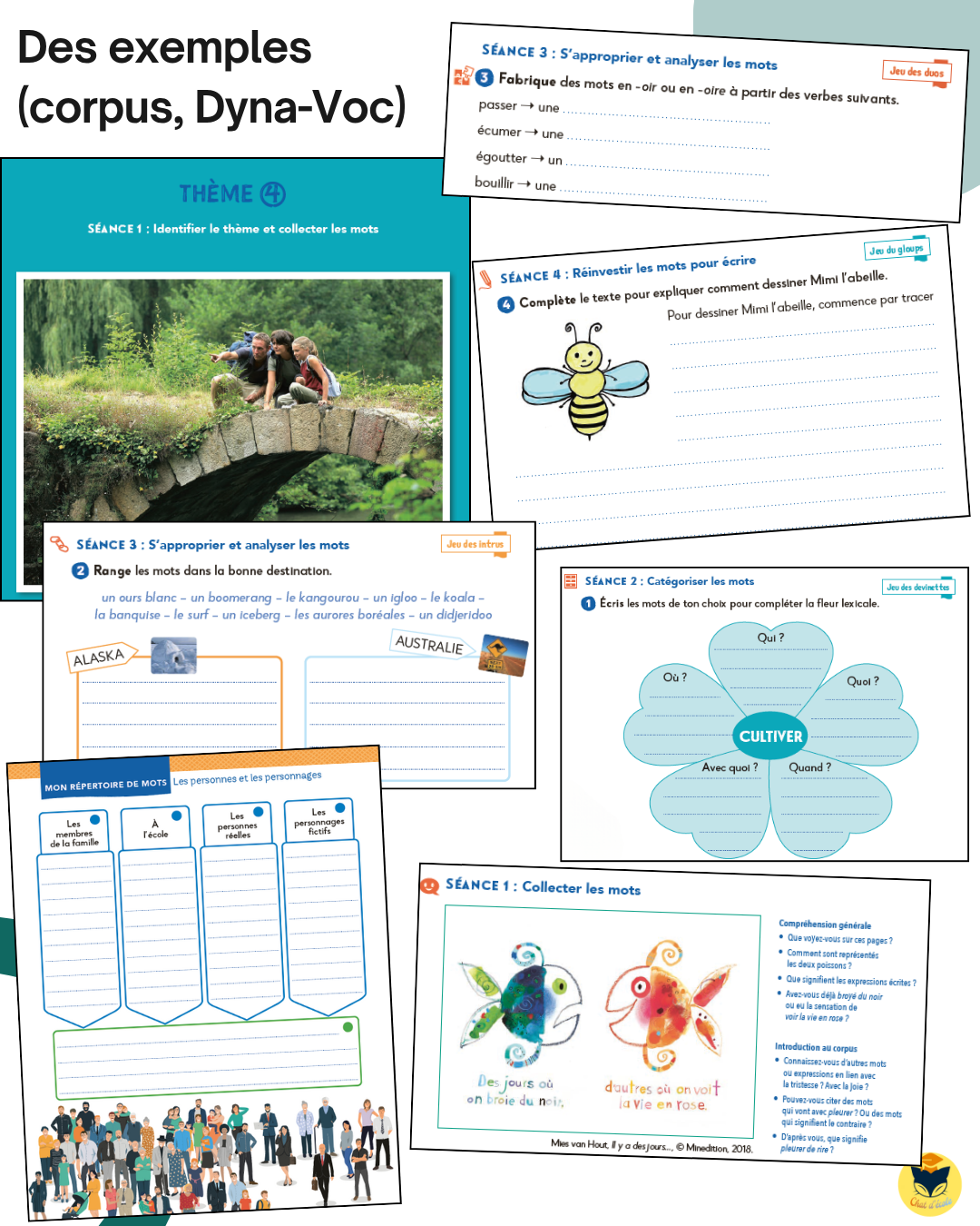 Je vous parle donc ici des projets pédagogiques autour de ces thématiques. Nous travaillons sur certains depuis plus de 2 ans (comme Dyna-Mots) et d’autres outils et supports se sont ajoutés par la suite. Ce qui permet d’avoir un travail relativement exhaustif de ce qu’il est possible de faire en vocabulaire, en lien avec les nouveaux programmes, sur les années de CE1 et de CE2