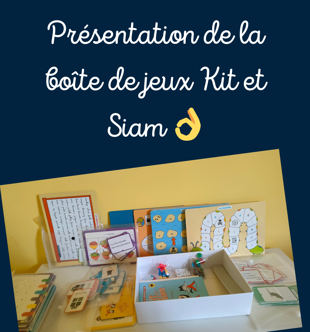 Dans ces vidéos, je vous présente le contenu de la boite de manipulation et de jeux de la méthode Kit et Siam, je vous montre comment j’ai rangé et organisé les jeux et je vous parle plus en détail des activités autocorrectives.