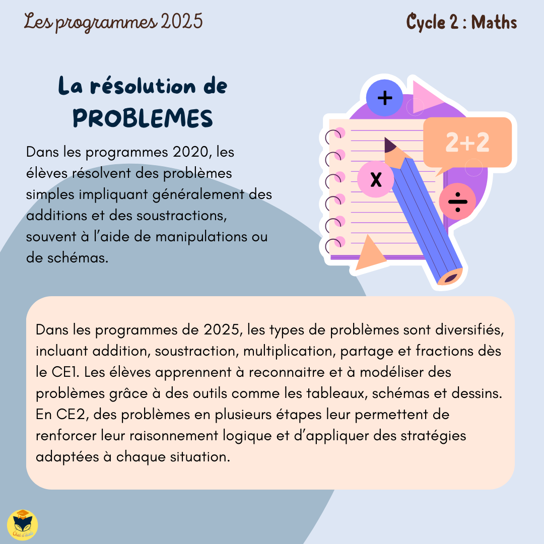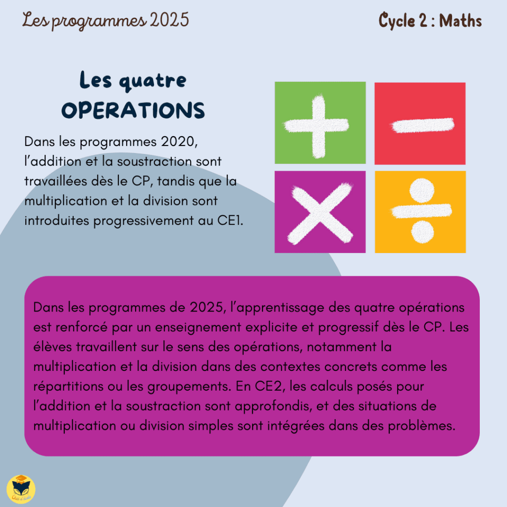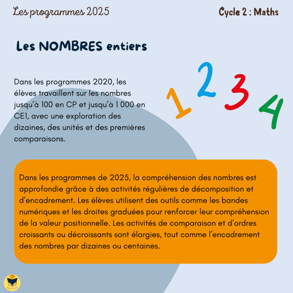 Voici la suite et fin des documents sur les nouveaux programmes 2025, et on poursuit aujourd’hui avec les mathématiques au cycle 2.