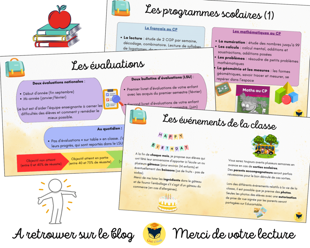 Première année que j’ai un CP, j’ai appris le jour de la pré rentrée que j’allais prendre la classe donc la réunion me faisait bien peur… ton travail me sauve 🙏🏻