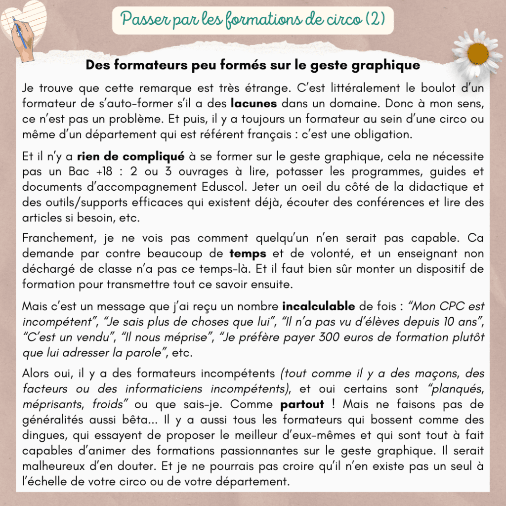 Suite à des échanges très intéressants sur les réseaux sociaux avec des collègues, principalement de cycles 1 et 2, j’ai compilé ici quelques axes autour de la formation sur le geste graphique.