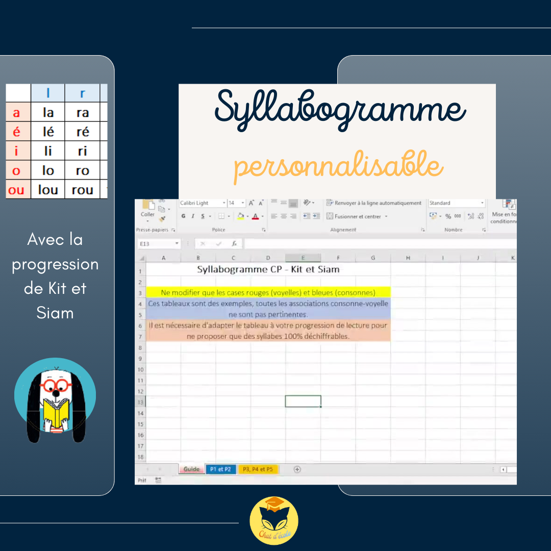 J’ai donc réalisé un document Excel que vous pouvez télécharger en bas de cet article et qui permet de créer votre propre syllabogramme – le mien reprenant la progression de Kit et Siam.
