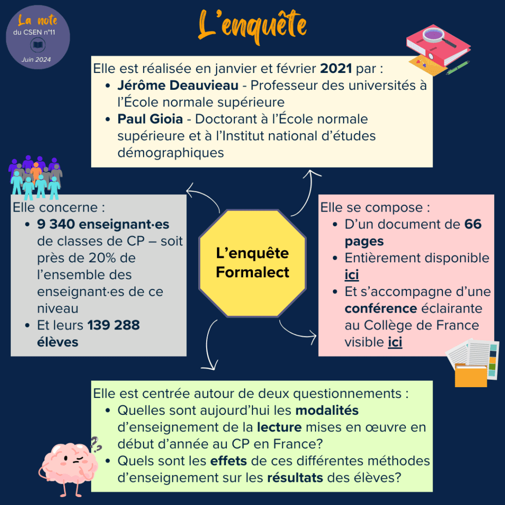 Elle se base sur l’étude Formalect menée par Jérôme Deauvieau et Paul Gioia, réalisée auprès de plus de 9000 enseignants de CP.