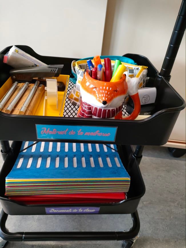 Parce que ça ROULE pardi ! J’arpente souvent ma classe d’un bout à l’autre, et je me retrouve à aider/corriger les élèves aux quatre coins de la salle. Un petit chariot qui me suit partout, c’est l’idéal !