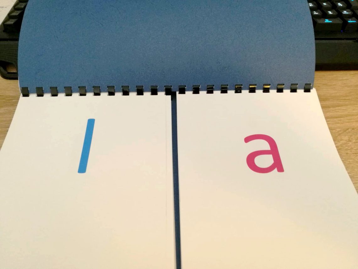 Pour le « gros » syllabaire que vous voyez en photo, chaque son est au format A5 et l’ensemble de l’outil est donc en A4. Mais vous pouvez en faire un plus petit ou plus gros, selon vos envies !