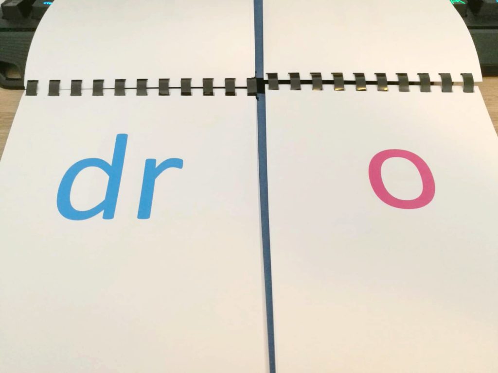 Pour le « gros » syllabaire que vous voyez en photo, chaque son est au format A5 et l’ensemble de l’outil est donc en A4. Mais vous pouvez en faire un plus petit ou plus gros, selon vos envies !