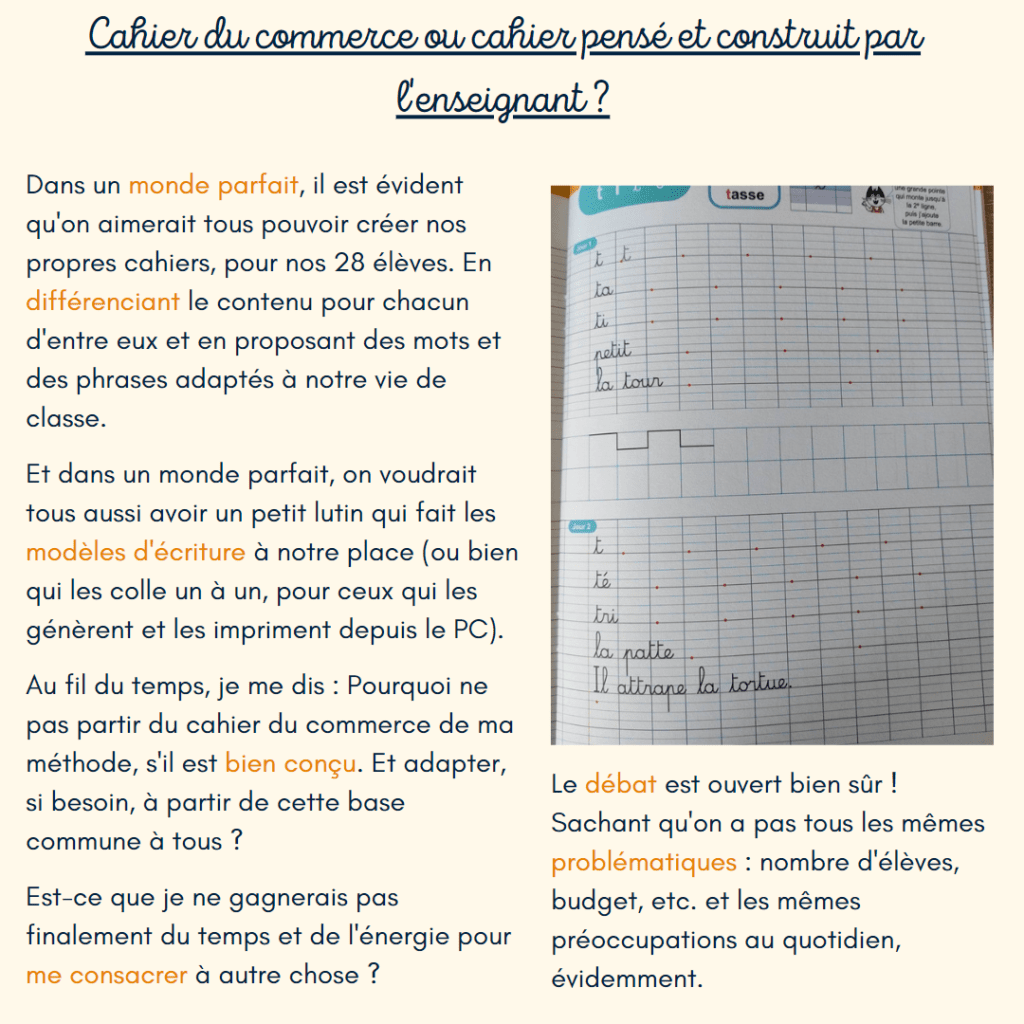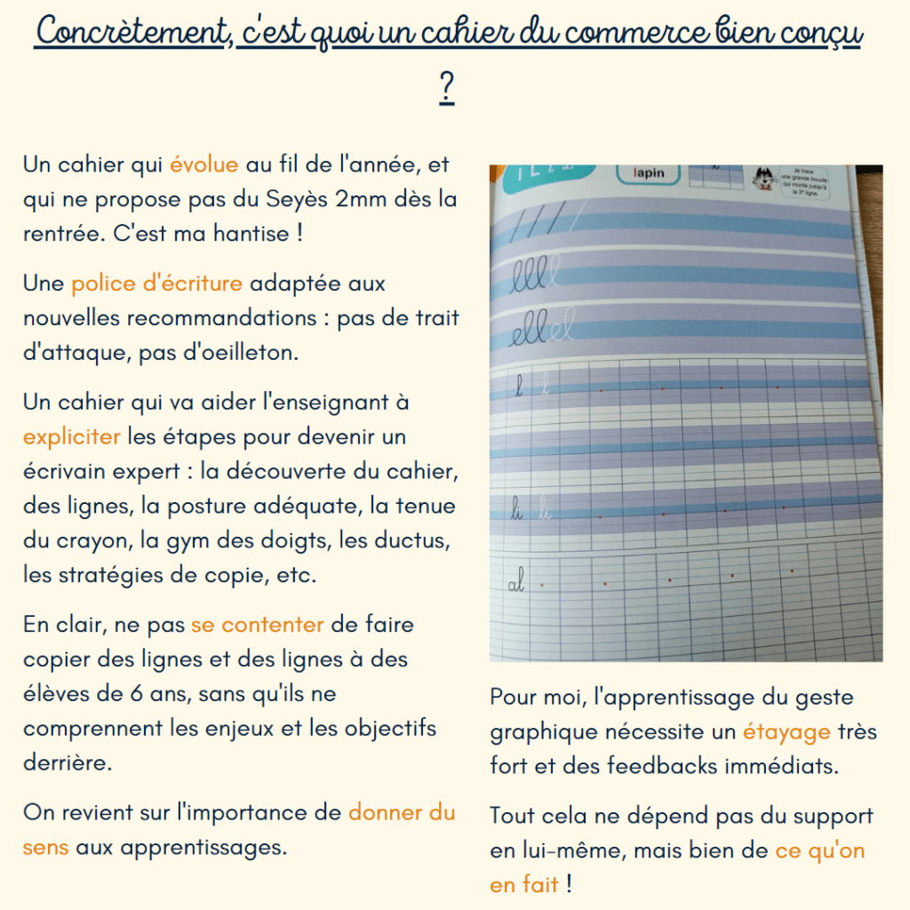 📚 Et on revient plus en détail sur la question de la progression dans l’apprentissage du geste graphique au CP, ou encore celle de l’utilisation d’un cahier du commerce en classe.