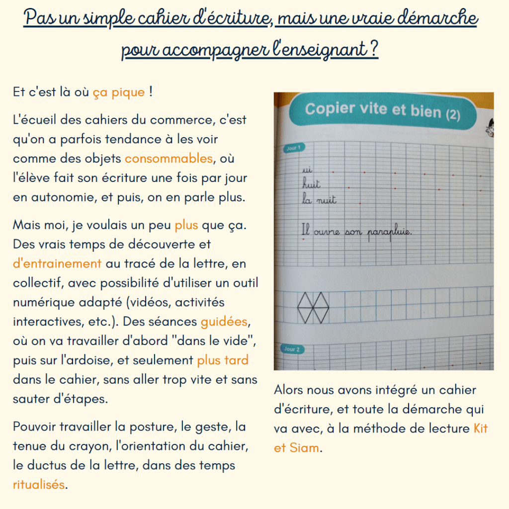 📚 Je vous précise dans ce post quelques-uns de nos choix liés à ce cahier d’écriture.